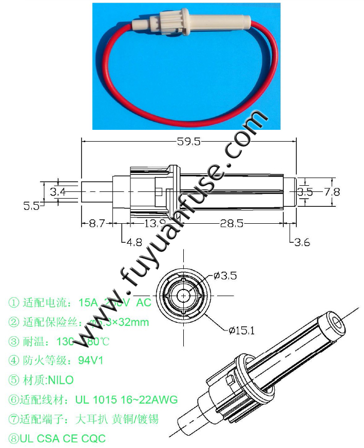 6*30拉線盒保險絲座 H3-630NL-1 20A250V