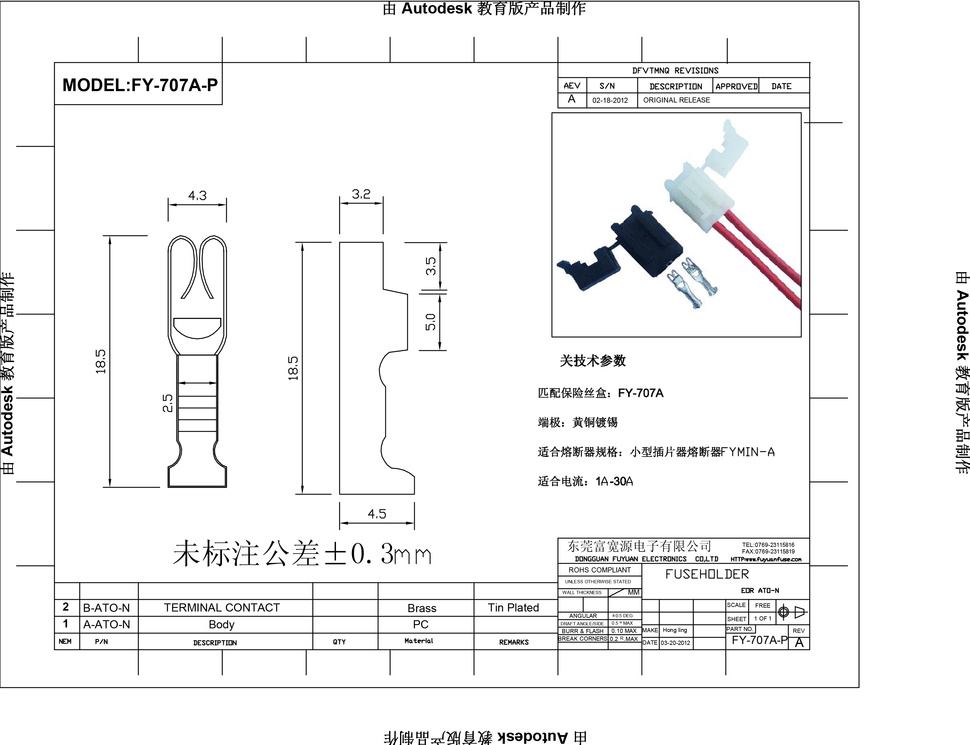 | 小號汽車插片保險絲座 FKY-707A 阻燃等級94V0  小號汽車插片保險絲座 FKY-707A 阻燃等級94V0